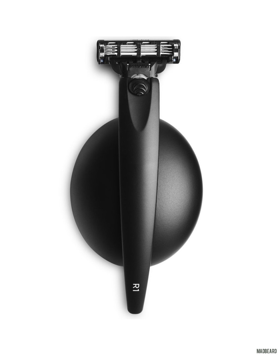 Элитная. Переменчивая. С характером. Современный черный является недавним прибавлением к палитре, составленной по автомотивам, – последний тихий аккорд, который привлек внимание. Так что неудивительно, почему появился специальный выпуск набора R1 – бритвы, которая выглядит притягательно агрессивно в матовом черном, и уникальной подставки.