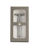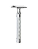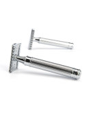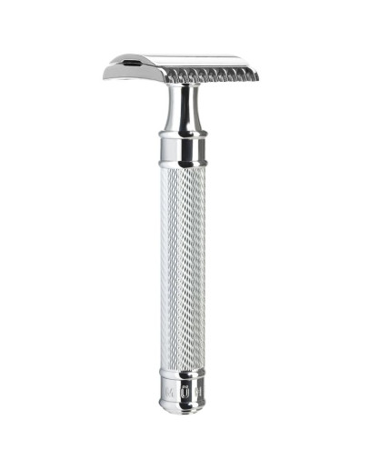 Muehle Traditional R 41 GRANDE - Т-образная бритва. Была разработана для опытных любителей влажного бритья - это самый близкий аналог опасной бритвы. Более агрессивный угол между поверхностью кожи и лезвием делает бритье особенно чистым и эффективным. Хром - гальванически обработанный серебристо-белый металл. Изготовленные из металла детали сначала покрываются никелем, а затем хромируются.
