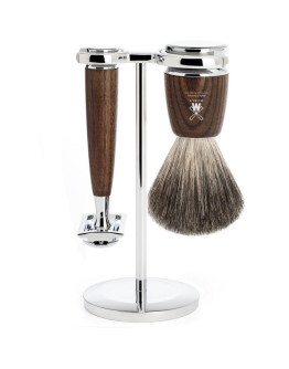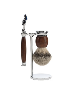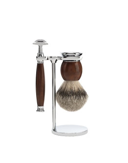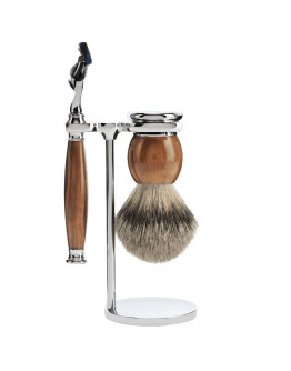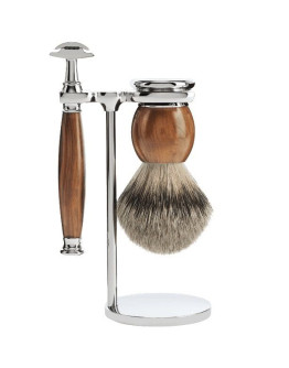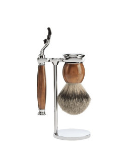 КупитьНабор для бритья из трех предметов: - Безопасная бритва со сменным лезвием. - Помазок для бритья с..