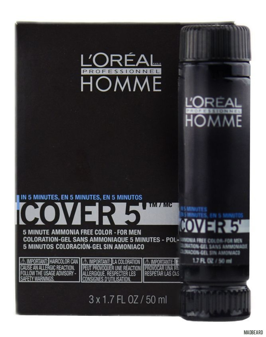 L'Oreal Professionnel Homme Cover 5 TM - тонирующий гель. Гель имеет оригинальную жидкую и полупрозрачную текстуру, быстро трансформируется в легкий кремообразный гель, наносится на мойке и образует легкую пену, которая быстро проникает в волосы. Помогает создать максимально естественный цвет волос. Средство не полностью закрашивает седину, а создаёт идеальный цветовой переход. Палитра гелей состоит только из натуральных оттенков. После применения средства волосы легко тонируются, поэтому седина становится менее заметной, а волосы выглядят здоровее и ярче. Гель наносится как шампунь, тонирует волосы за 5 минут.