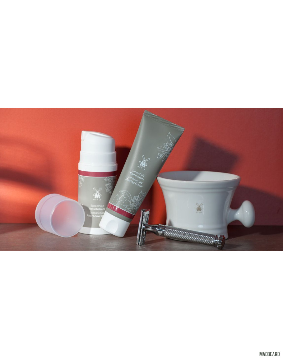 Muehle - чаша для бритья. Глубокая фарфоровая чаша с удобной ручкой напоминает традиционный классический дизайн английских барбершопов. Идеальна для использования с твердым мылом для бритья MUEHLE.