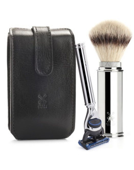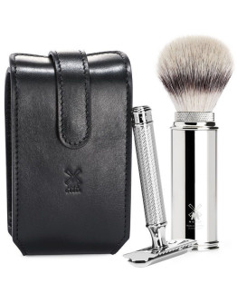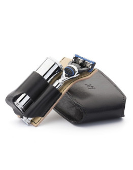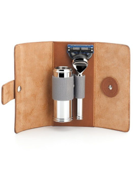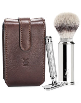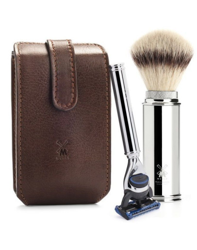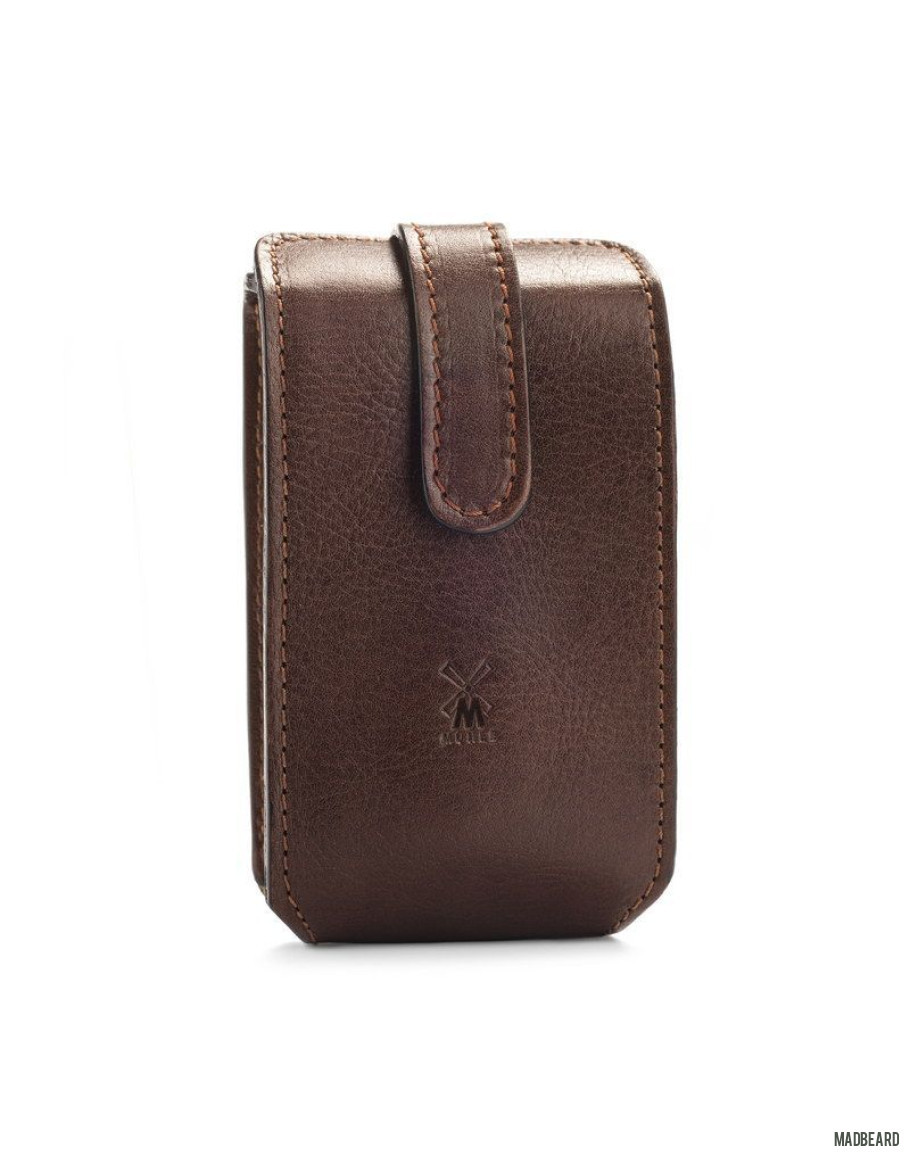 Muehle - Дорожный бритвенный набор Чехол из натуральной коричневой кожи Дорожный помазок Дорожная бритва Fusion