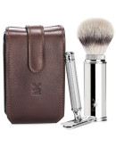 Muehle - Дорожный бритвенный набор Чехол из натуральной коричневой кожи Дорожный помазок Т-образная бритва