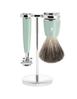 КупитьНабор для бритья из трех предметов: - Безопасная бритва со сменным лезвием. - Помазок для бритья с..