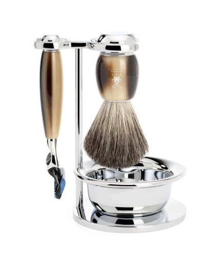 Muehle Vivo - Бритвенный набор Смола Цвет рога Натуральный барсучий ворс Бритва Fusion Чаша