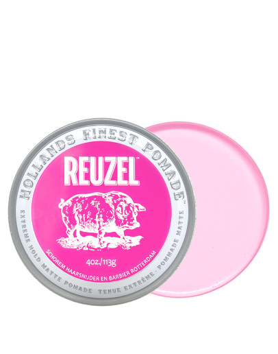 Reuzel Extreme Hold Matte Pomade  - это аналог серой матовой помады экстрасильной фиксации в линейке помад REUZEL на водной основе. Лимитированная серия в розовом цвете. Предназначена для создания текстуры и объёма на волосах, придаёт им матовость. Уплотняет тонкие волосы. Подходит для непослушных волос. Легко смывается водой.