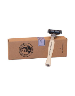 КупитьНабор для бритья из трех предметов: - Безопасная бритва со сменным лезвием. - Помазок для бритья с..